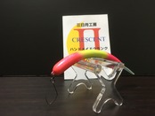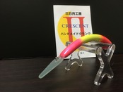 ハンドメイドクランク クレッセントF(フローティング)のトリプルカラーです。体長8cm・重量4.3g前後になります。カラーは頭から蛍光ピンク・蛍光イエロー・蛍光レッドを吹いて有り全体をブルーパールクリアで仕上げています。ボディーはエポキシ樹脂を使用していますので多少の曲がりなどが有ったりカラーが飛んでいたりとハンドメイドでの個体差なども有りますのでご了承の上ご購入をお無い致します